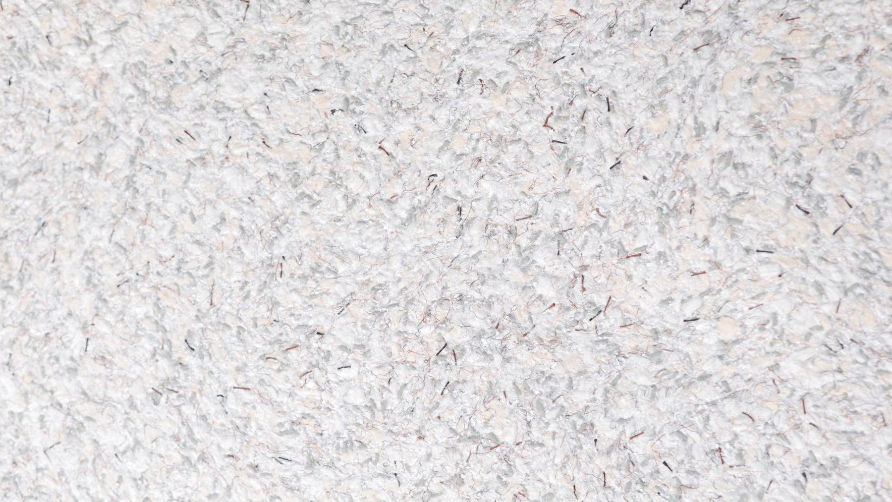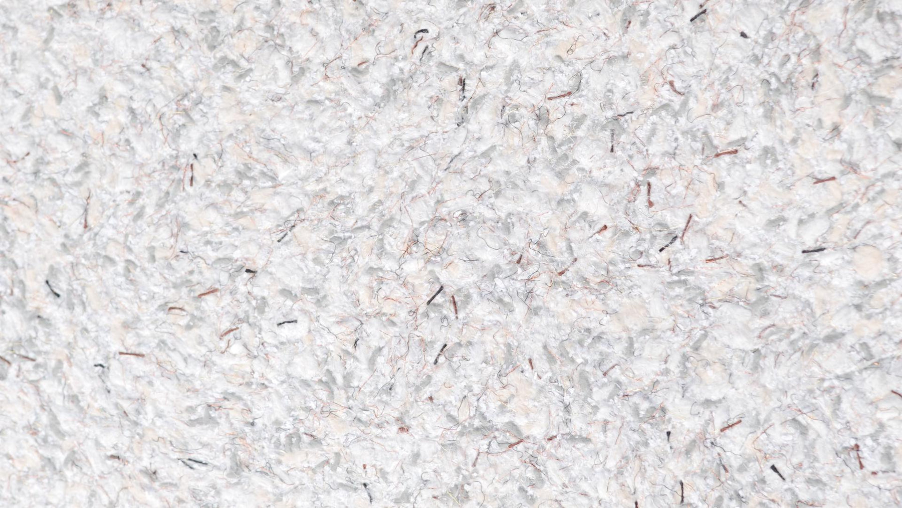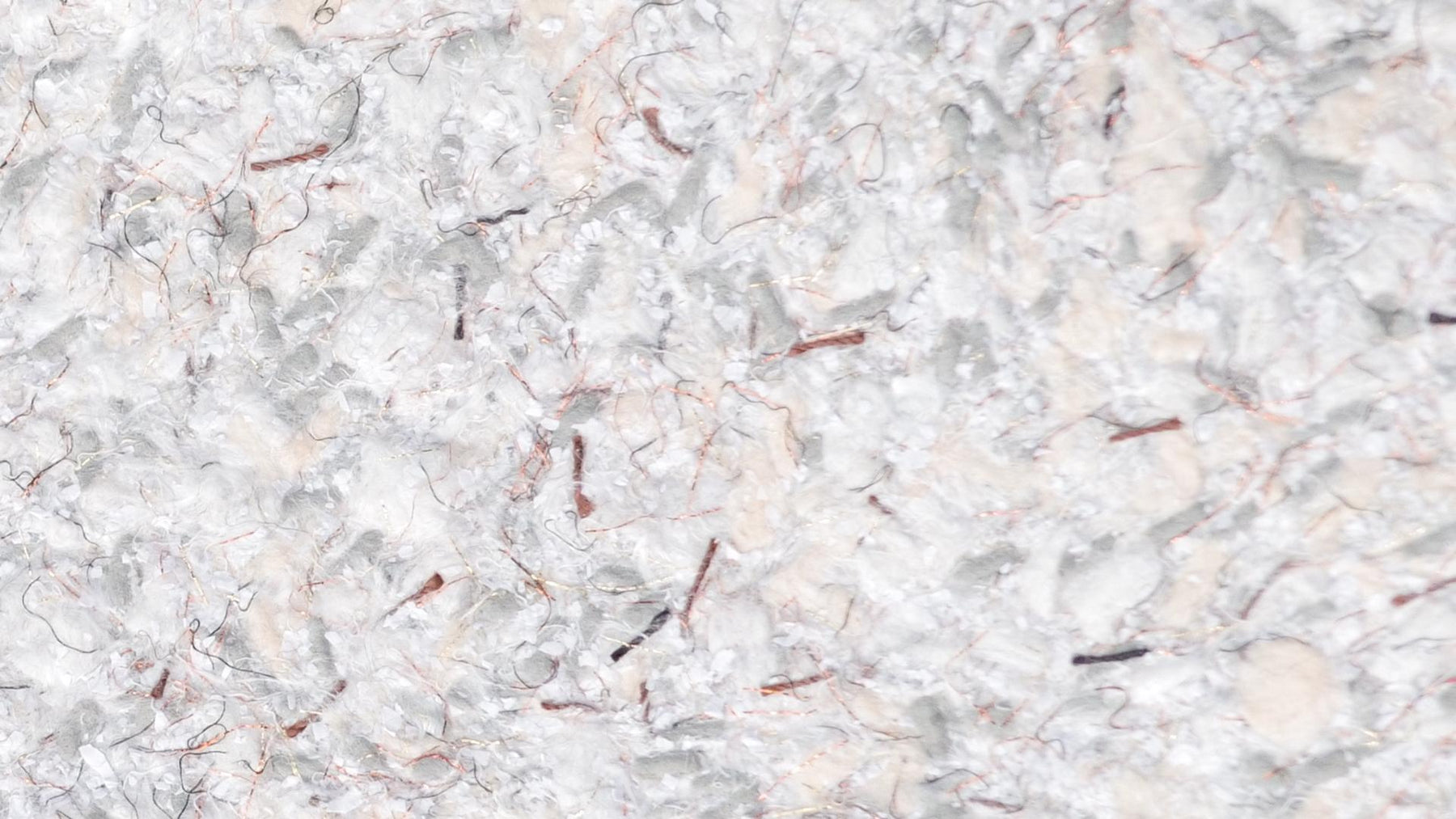 Grober weiß-grauer Baumwollputz mit schwarzen Fasern, Effektfäden in Silber, Kupfer und Gold weißen Zellulosestückchen, schwarzem Farbflock und bordeaux-roten Garnen.