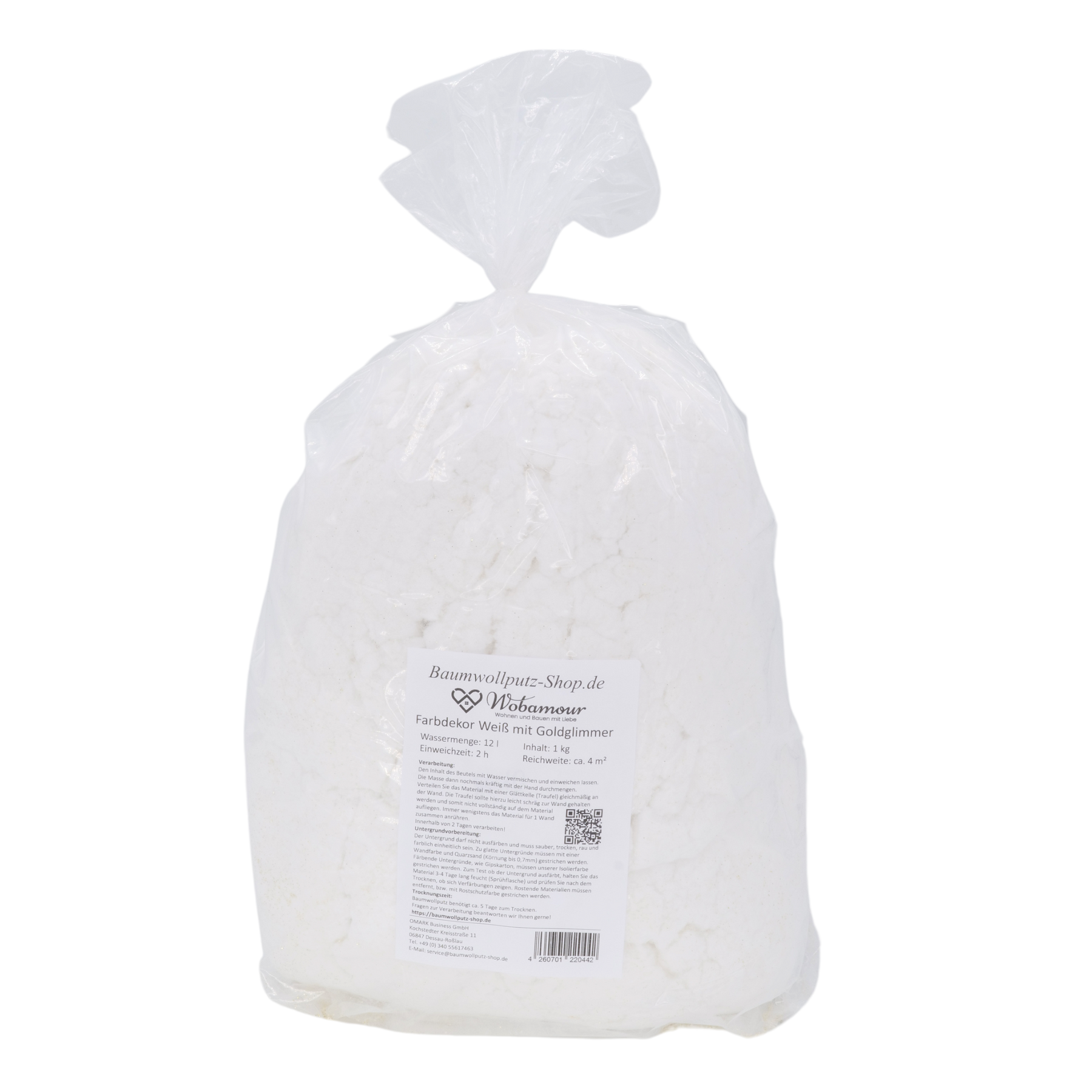 Baumwollputz Farbdekor Weiß mit Goldglimmer