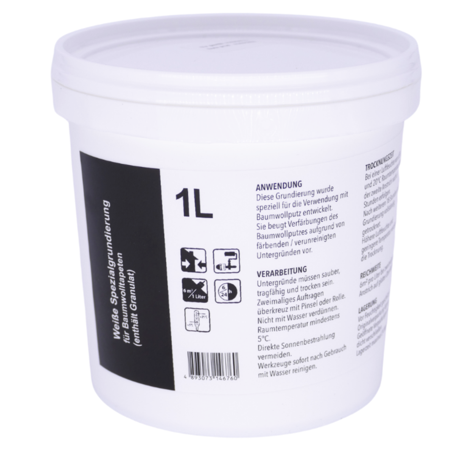 1 Liter Isolierfarbe mit Granulat für Baumwollputz (Reichweite bis zu 6 m² bei nicht saugendem Untergrund)
